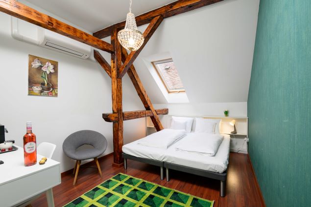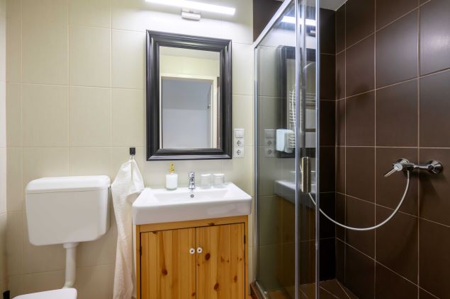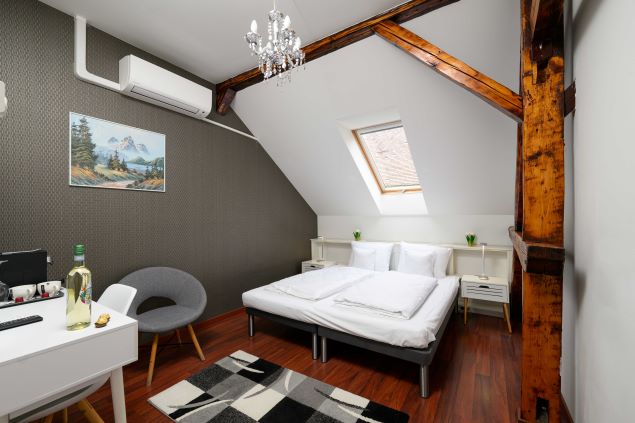 Légkondicionálás a tetőtéri szobákban, zuhanyzó és WC minden szobában.