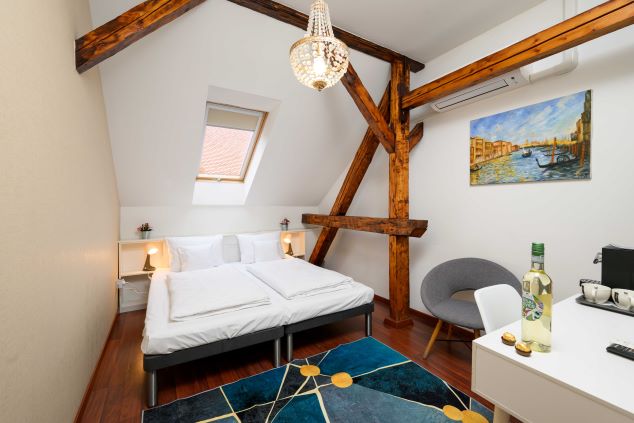 A szobák alapfelszereltsége: műholdas televízió, hajszárító, törölköző és sampon/tusfürdő bekészítés, kis méretű hűtőszekrény. Kapszulás kávégép a tetőtéri szobákban bekészítéssel. Vasaló, vasalódeszka, ruhaszárító a recepción igény szerint kérhető.