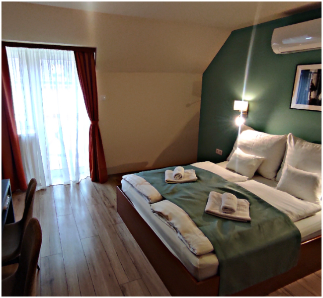 Lépjen be egy igazi pihenésre tervezett térbe! Szállodánk 17 felújított, erkélyes, klimatizált franciaágyas szobája (160 cm x 200 cm) garantálja a nyugodt és kényelmes kikapcsolódást.