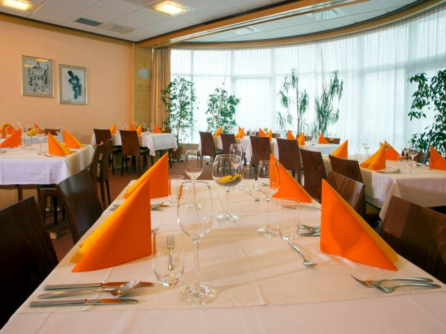A hotel étterme 140 fő elhelyezésére alkalmas, egyéni utazókat és kisebb nagyobb csoportokat is szívesen fogad. Melegebb időben mindkét terasz a rendelkezésre áll a vendégek részére. Nyitva tartás: 06:00 - 15:00 és 18:00 - 22:00. Reggeli: 06:00 - 10:00