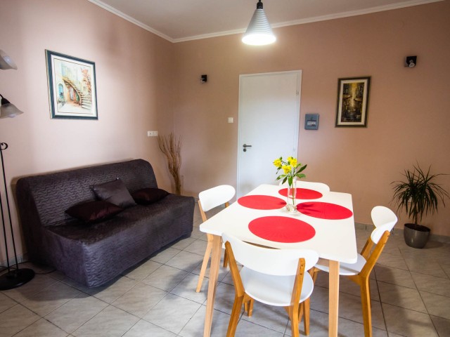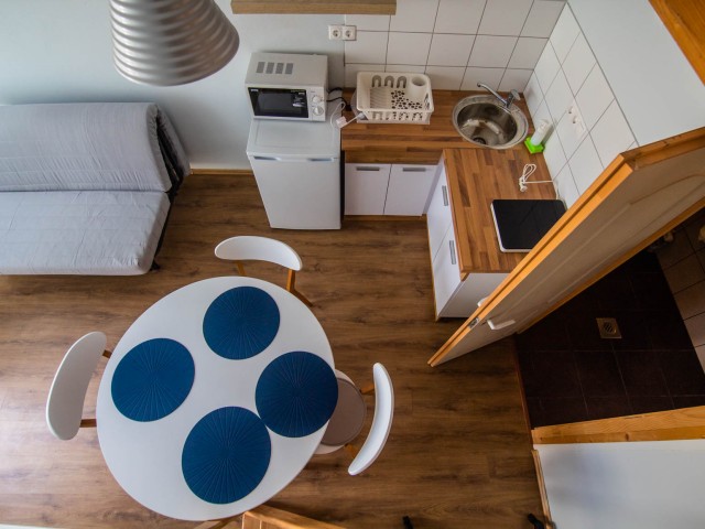 A kényelmesen berendezett lakóegységek mindegyikében található zuhanyozó/WC, klíma, síkképernyős TV, ingyenes WIFI, továbbá jól felszerelt konyhasarok biztosít lehetőséget az önellátásra. Az emeleten két apartman önálló balkonnal rendelkezik, a földszinten közös használatú fedett terasz biztosít lehetőséget baráti beszélgetésekre, borozgatásokra. A füvesített udvaron tűzrakóhely található; a parkolás a telken belül, az apartmanház előtt díjmentesen megoldott. 4 lakóegységünk hálószobáiban, illetve a galérián egy-egy franciaágy, a 2 hálószobásban két összetolható egyszemélyes illetve egy franciaágy, továbbá a nappalikban kényelmes, kihúzható, 2 személyes kanapék biztosítják a nyugodt pihenést. Szükség eseten egyes szobákban pótágy is elhelyezhető. Minden apartmanunk klímával felszerelt.