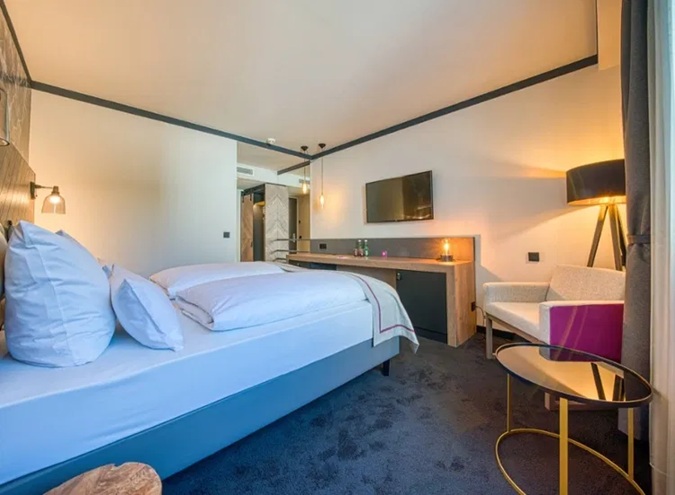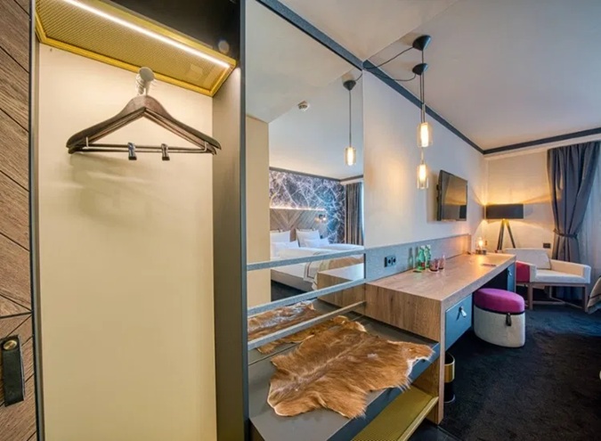 A szálloda az alpesi dizájnt ötvözi a praktikus funkcionalitással. Minden szoba modern berendezésű, és olyan kényelmi szolgáltatásokkal rendelkezik, mint az ingyenes Wi-Fi, a széf, a mini hűtőszekrény és a műholdas TV. A további kényelmet takarítás, a 24 órás büfé és a parkolás (közvetlenül a szálloda előtt) biztosítja.