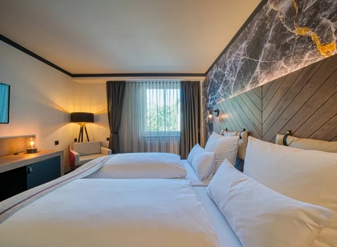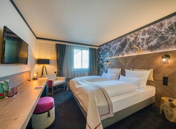 A szálloda az alpesi dizájnt ötvözi a praktikus funkcionalitással. Minden szoba modern berendezésű, és olyan kényelmi szolgáltatásokkal rendelkezik, mint az ingyenes Wi-Fi, a széf, a mini hűtőszekrény és a műholdas TV. A további kényelmet takarítás, a 24 órás büfé és a parkolás (közvetlenül a szálloda előtt) biztosítja.