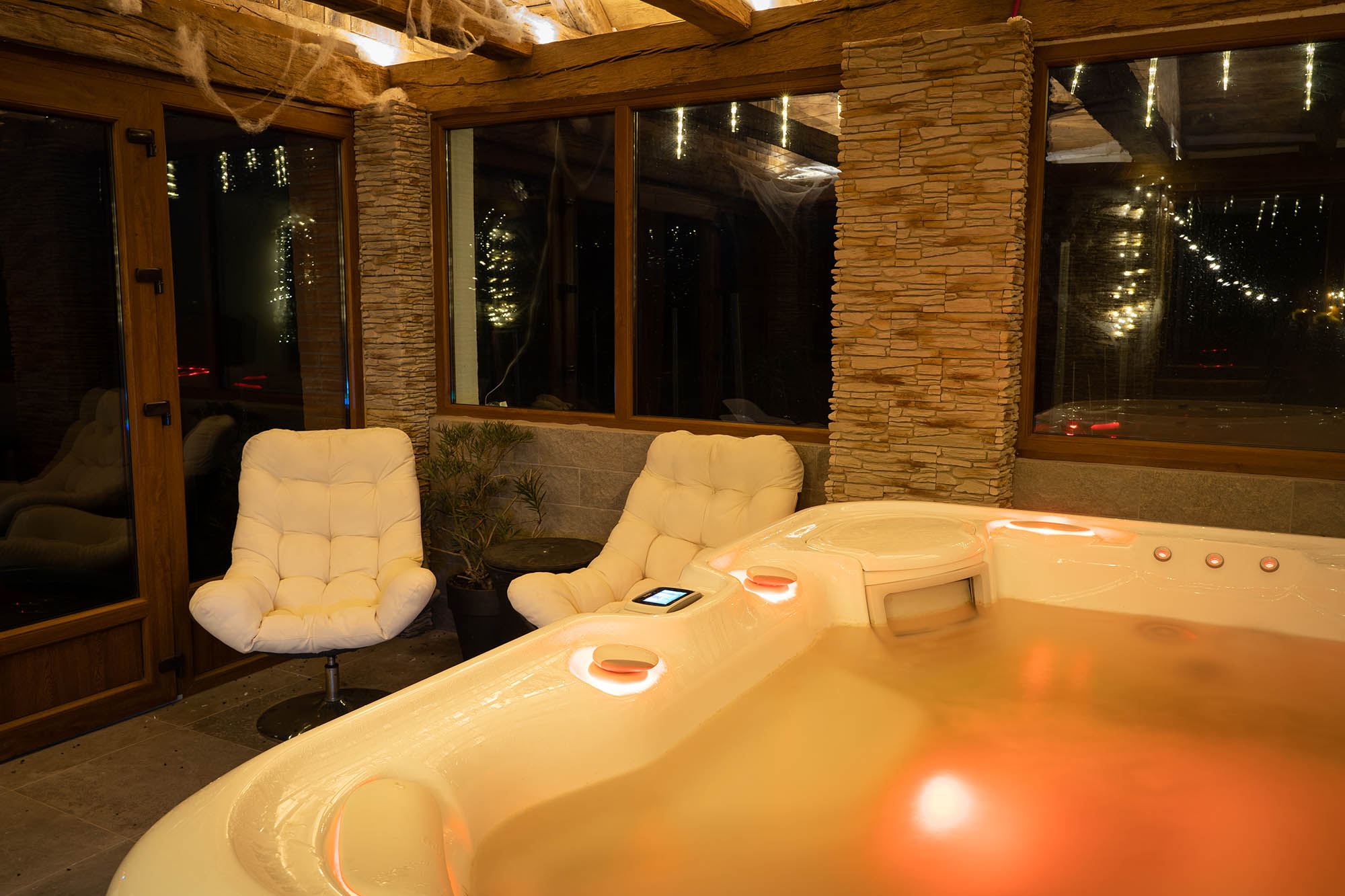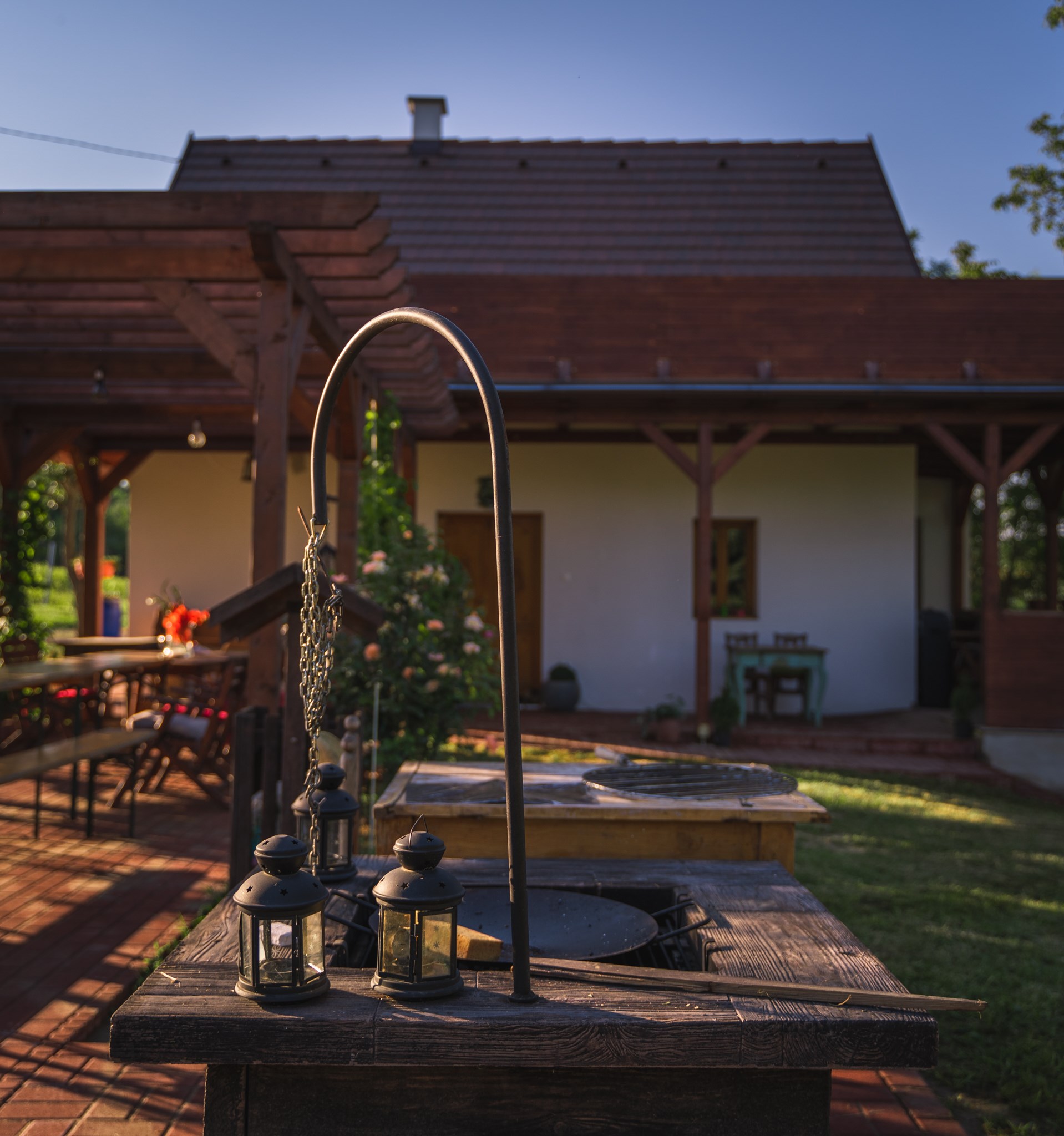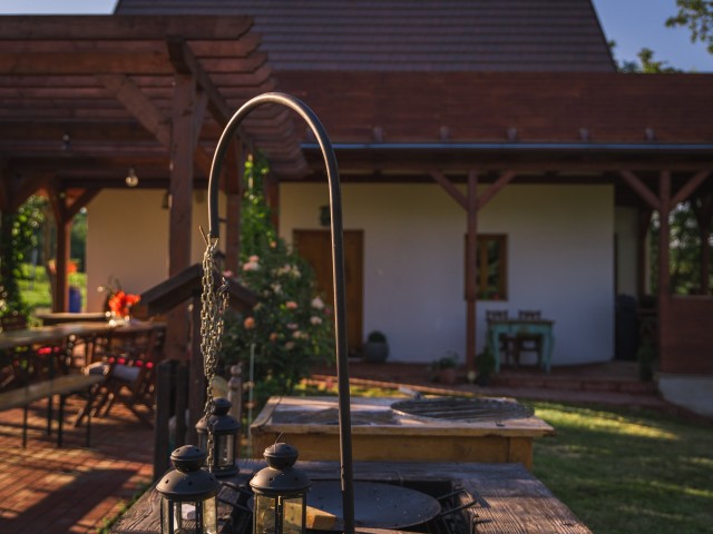 A napozó terasz, a fedett wellness medencével, jaccuzival és szanuával biztosítják a teljes feltöltődést. Ezen felül a kerti sütőgető és grillező dobja fel a közös esti vacsorákat és hozzák össze a csapatot.