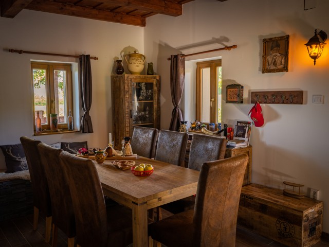 A házban 13 fő szállásolható el, kettő- és több ágyas szobákban. A felszerelt konyhát és étkezőt bármikor lehet használni, ugyanúgy, ahogy a kerti sütögetőt/bográcsozót, grillezőt, zsúrkocsit, sörpadokat és asztalokat a közös étkezésekhez az udvaron. Aki nem szeretne az étkezéssel törődni, a helyi vendéglőt tudjuk ajánlani, ahol ízletes ebéd és vacsora várja a betérő vendégeket.