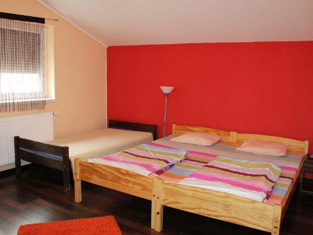 • Elhelyezés: földszint + egy emeletes házban; 2 ágyas, részben pótágyazható szobákban, illetve kétlégterű, 4-5 fős családi szobában. Valamennyi szobához saját fürdőszoba/WC tartozik.